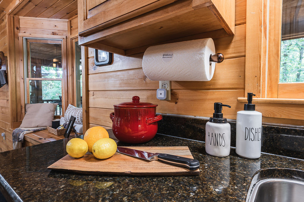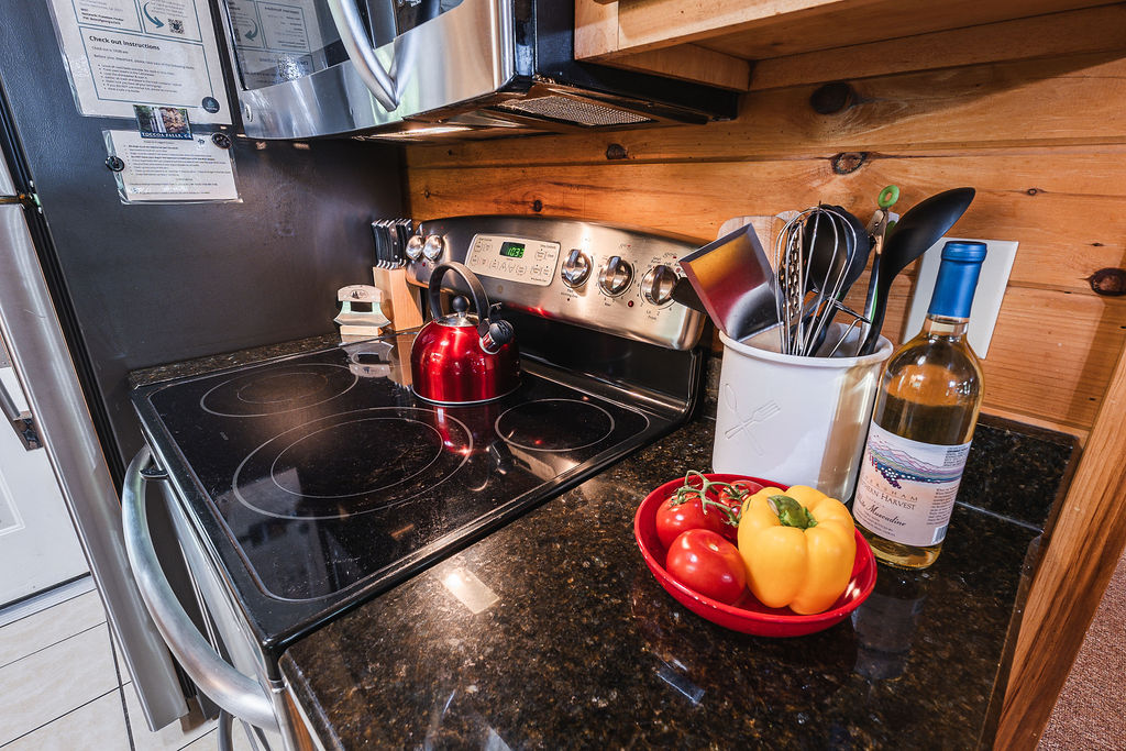 Everything I needed in the kitchen, was available. What we wanted out of our stay, was comfort and quiet. We got that and so much more. Everything we needed was on hand, everything. Kitchen fully stocked. Throw blankets galore. Most favorite, how homey and cozy the cabin itself is. Modern amenities, but still cozy and comfy
