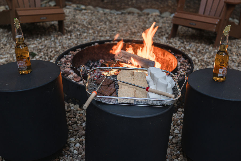 Freedom Finder is a spacious cabin with 3 bedrooms; 2 upstairs and one downstairs. With 2 fire pits, hot tub, luxurious porch swings, and an outdoor bed, the outdoor space is an oasis of tranquility. Grill some burgers on the AKORN and play a game of corn hole or horse shoes. On those colder days, curl up by the fireplace and play some board games or watch a movie. There's plenty of room to stretch out with 3 full-size sofas in the den. Freedom Finder is also dog-friendly (with a 2 dog maximum).